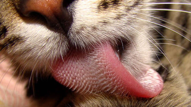 La lengua de un gato está cubierta por pequeñas protuberancias llamadas papilas, las cuales son responsables de esa textura áspera tan característica. Estas papilas están hechas de queratina, el mismo material que compone nuestras uñas y cabello.
